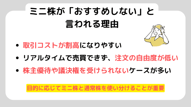 ミニ株が「おすすめしない」と言われる主な理由3つ