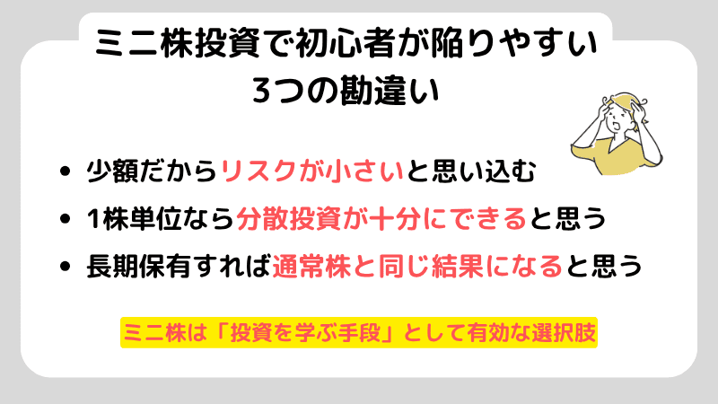 ミニ株は初心者にとって投資を始めやすい制度ですが、仕組みを理解せずに利用すると「思っていたのと違う」と感じることがあります。